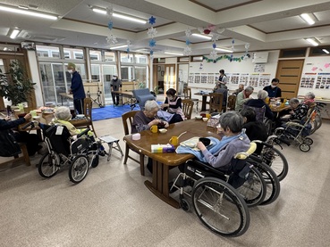 昼食には打ち立ての新そばを皆さんでいただき、「めーなー」と笑顔で味わわれていました。